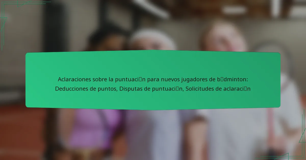 Entender las aclaraciones sobre la puntuación es esencial para que los nuevos jugadores de bádminton naveguen por las complejidades del juego. Las deducciones de puntos pueden impactar significativamente los resultados de los partidos, y saber cómo resolver disputas sobre la puntuación es crucial para un juego limpio. Los jugadores deben familiarizarse con las reglas y los canales adecuados para solicitar aclaraciones para mejorar su experiencia en la cancha.